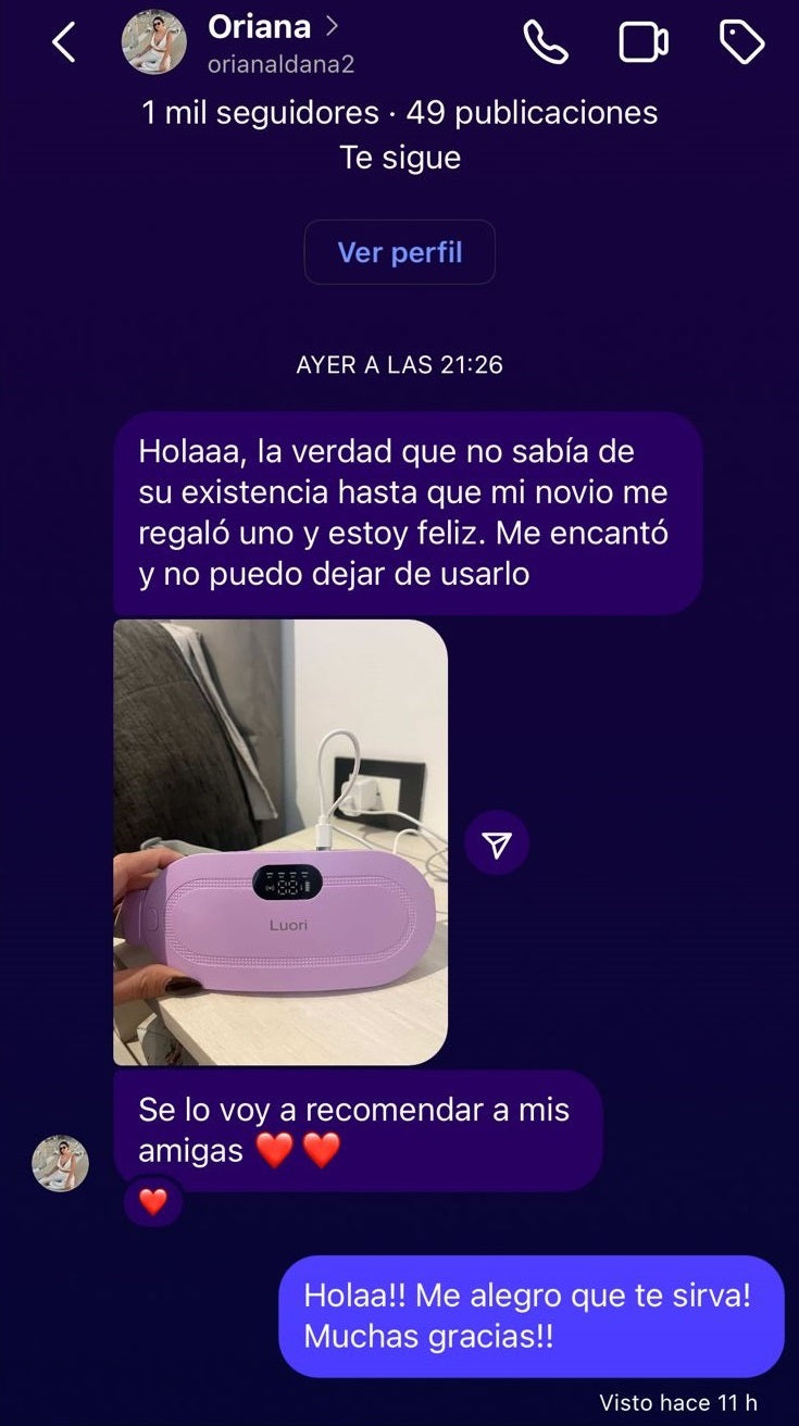 Eso es lo que hace Luori: combina calor y masaje inteligente para relajar la zona justo donde más lo necesitás. Podés usarlo en la panza o en la espalda baja, y la sensación es tan reconfortante que lo vas a querer tener siempre cerca.